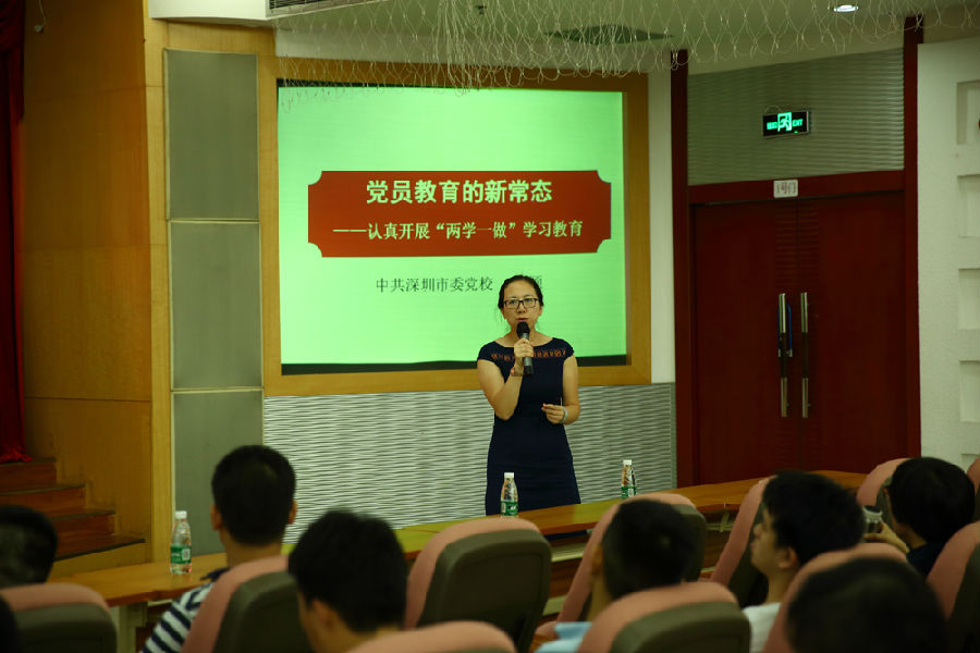 会上,集团党委邀请中共深圳市委党校党史党建教研部韩颖副教授作“两学一做”专题党课。韩教授分别从学习党章党规,以党章为镜,以正言行;以习近平总书记系列重要讲话精神武装全党;做忠诚、干净、担当的合格党员三个方面对“两学一做”专题学习进行了阐述,并重点对党章的变化进行了解读,通过生动活泼的语言,结合正反案例,引经据典、旁征博引。近2个小时的授课,给所有与会人员留下了深刻印象。