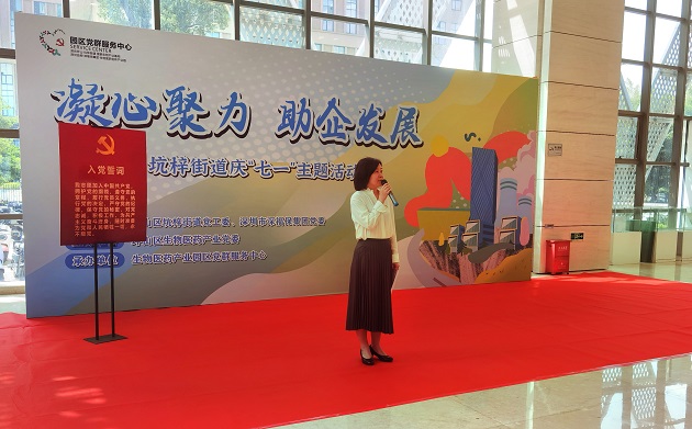 为庆祝中国共产党成立103周年,7月1日下午,金年会集团党委、坪山区坑梓街道党工委依托共建党组织坪山生物医药产业党委,在集团所属坪山生物医药创新产业园联合开展了“凝心聚力