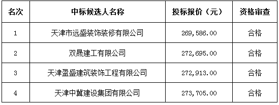 中 标 人:天津市远盛装饰装修有限公司。