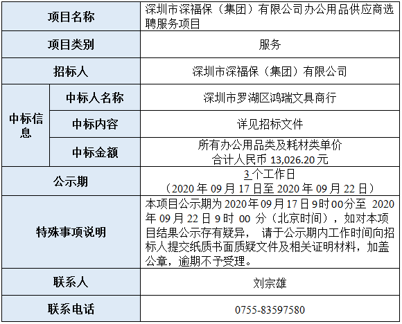 深圳市金年会(集团)有限公司办公用品供应商选聘服务项目已完成评审,现将本项目评审的相关情况及结果进行公示,具体内容如下: