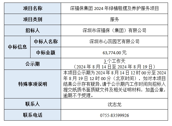 金年会集团2024年绿植租摆及养护服务项目已完成评审,现将本项目评审的相关情况及结果进行公示,具体内容如下: