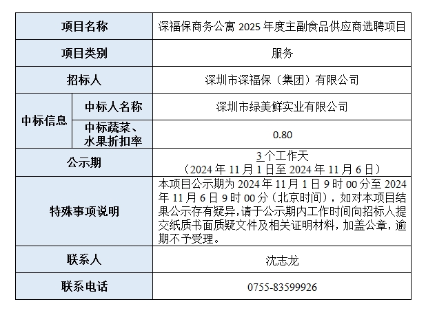 金年会商务公寓2025年度主副食品供应商选聘项目已完成评审,现将本项目评审的相关情况及结果进行公示,具体内容如下:
