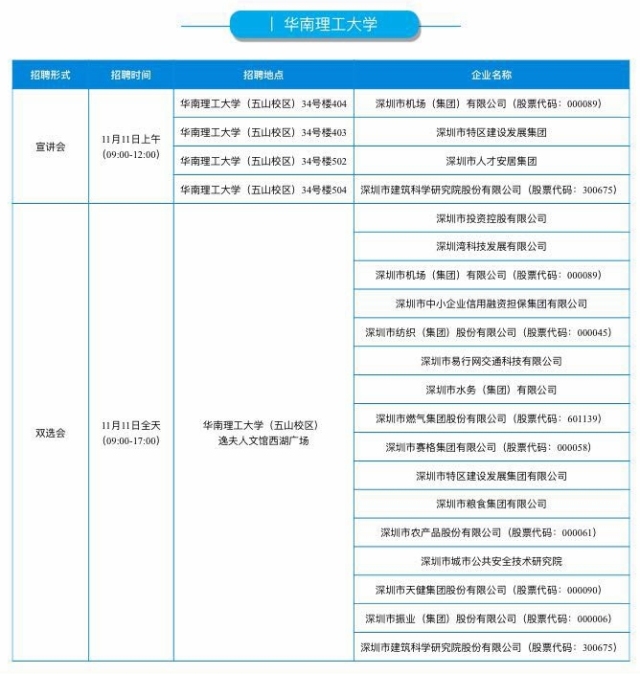 深爱人才,圳等你来!2017年11月10-11日,深圳市国资委将组织18家直管企业,赴广州中山大学、华南理工大学等高校举办首届市属国资国企校园招聘系列活动,计划招聘应届毕业生1400余人,提供岗位400余个。