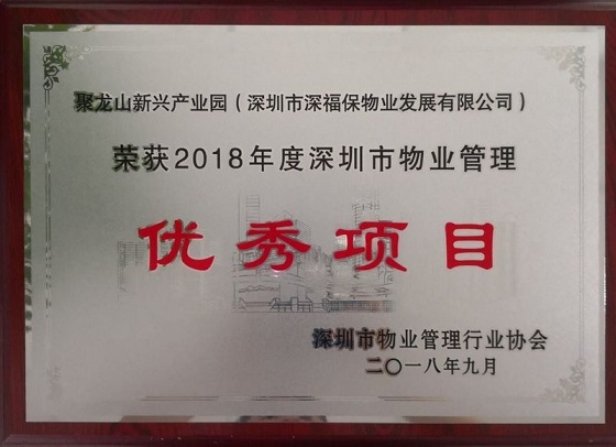 在9月6日下午召开的 “2018年深圳市物业管理优秀项目达标验收结果”表彰会上,聚龙山新兴产业园荣获“2018年度深圳市物业管理优秀项目”称号,园区物业服务中心主任陈法兴荣获“三星级优秀项目经理”称号。此次表彰会由深圳市物业管理协会组织召开,旨在总结深圳市物业管理优秀项目考评工作经验,表彰2018年优秀物管项目和个人。