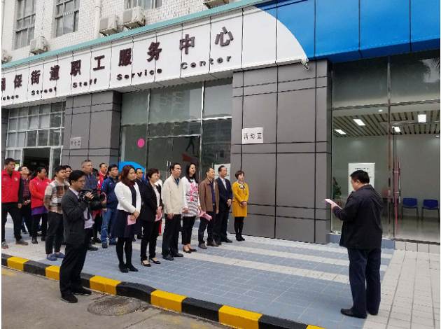2019年2月22日上午,福保街道职工服务中心在自由港湾公寓首层正式揭牌成立。揭牌仪式由福保街道总工会主席邓堂华主持,福田区人大副主任、总工会主席章海蓉,福田区总工会副主席刘东升,福保街道党工委副书记黎佃,金年会集团党委副书记、纪委书记、工会主席陈健参加了揭牌仪式。