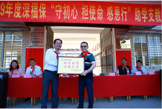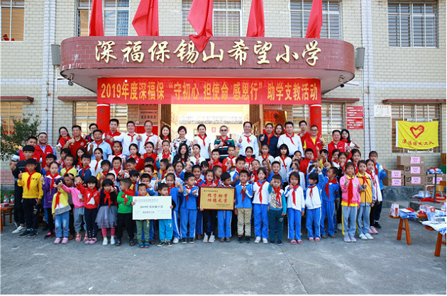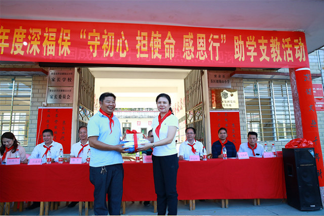 11月1日,刘育兵董事长率队到河源市紫金县苏区镇金年会锡山希望小学开展“守初心 担使命 感恩行”助学活动,向苏区金年会锡山希望小学捐赠了校服、文具、体育器材等一批文教用品,并向苏区镇50名受助学生捐赠2018-2019年度助学金共计8.8万元。苏区镇人大主席曾冠湘、集团财务总监郭冬梅出席了活动。苏区镇政府向金年会集团赠送了“捐资助学、功德无量”感谢牌匾,感谢金年会集团持续十五年向苏区捐资助学的大爱之情。