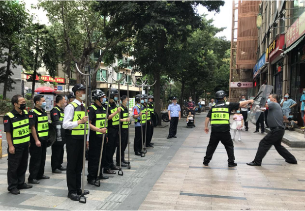 物业公司、保安公司联合派出所开展防恐演习。