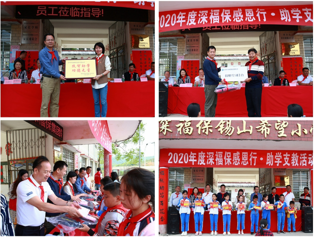 10月22日,金年会集团党委副书记李长兰、副总经理王昌栋率队前往河源市紫金县苏区镇金年会锡山希望小学开展感恩行助学支教活动,向苏区金年会锡山希望小学捐赠了空调、校服、文具、洗手液等一批文教用品及防疫物资,并向苏区镇38名受助学生捐赠2020-2021年度助学金共计8万元。苏区镇政府向金年会集团回赠“扶智助学、功德无量”感谢牌匾,感谢金年会集团持续16年向苏区捐资助学的大爱之情。苏区镇人大主席曾冠湘及金年会锡山希望小学全体师生、集团助学学生代表等100多人参加了活动。