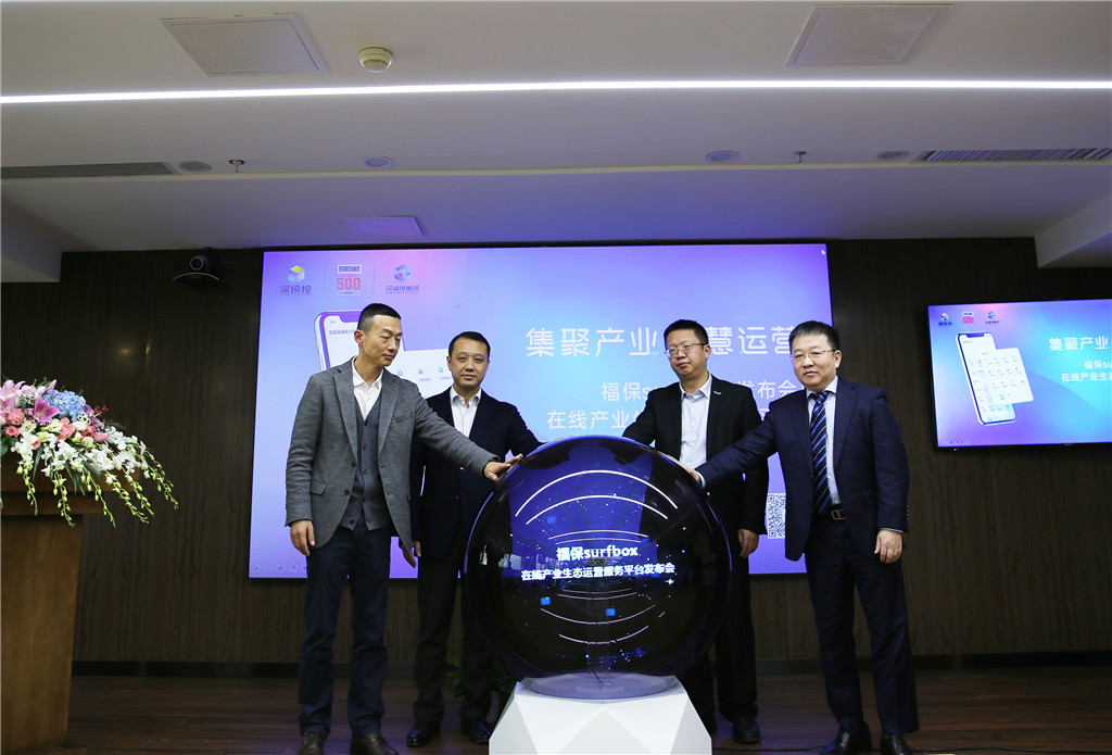 12月18日下午,金年会集团在线产业生态运营服务平台——福保surfbox在河套深港科技创新合作区上线,福田区大湾区建设发展促进中心副主任李伟,福保街道办企业服务部部长赖锐,金年会集团董事长谢涛、副总经理尹忠华,及近百家金年会园区企业和金年会集团合作伙伴代表参加了发布会,共同见证福保surfbox在河套深港科技创新合作区上线。