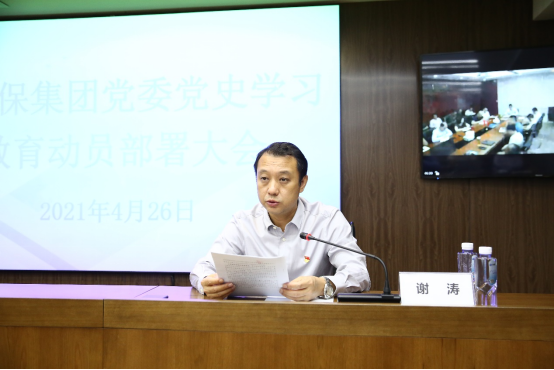 4月26日上午,集团党委召开党史学习教育动员部署大会。会议由集团党委副书记、总经理王昌栋主持,集团党委书记、董事长谢涛作了动员讲话。会议传达了上级党委关于开展党史学习教育活动的安排部署,并结合集团工作实际对党史学习教育进行了动员布置。集团系统全体党员参会。