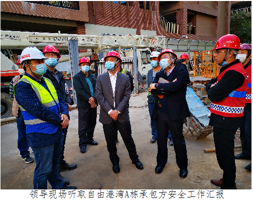 1月19日,安委会主任谢涛董事长率队检查了自由港湾A栋在建项目的安全生产工作,并对施工单位的安全生产和疫情防控工作提出了要求。
