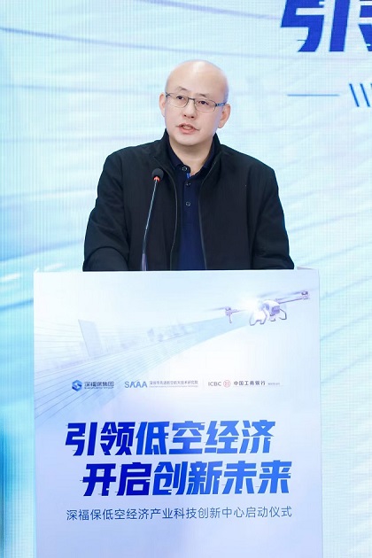 市交通局福田管理局局长李波代表深圳市福田区低空经济工作专班,对科创中心的成立表示热烈的祝贺。福田管理局在市交通运输局以及区委、区政府的正确领导下,紧密围绕福田区的发展战略,积极推动低空经济产业的规划和布局。一是结合福田区的区位优势和产业基础,制定了低空经济产业发展规划,明确了低空经济产业的发展方向和重点领域。二是积极协调各部门,加强对低空经济产业的用地保障和基础设施建设,为低空经济产业的发展提供了良好的环境。三是加强了对低空经济企业的扶持和服务,积极落实国家和地方的相关政策,为低空经济企业提供资金扶持等一系列的政策支持。未来,将继续加大对低空经济的支持力度,推动低空经济产业的快速发展。进一步鼓励国企、高校和科研院所加入低空经济产业发展中来,深化产学研合作,共同培养更多的低空经济专业人才和技术创新人才,推动低空经济产业与其他产业的深度融合,为福田区的经济社会发展做出更大的贡献。